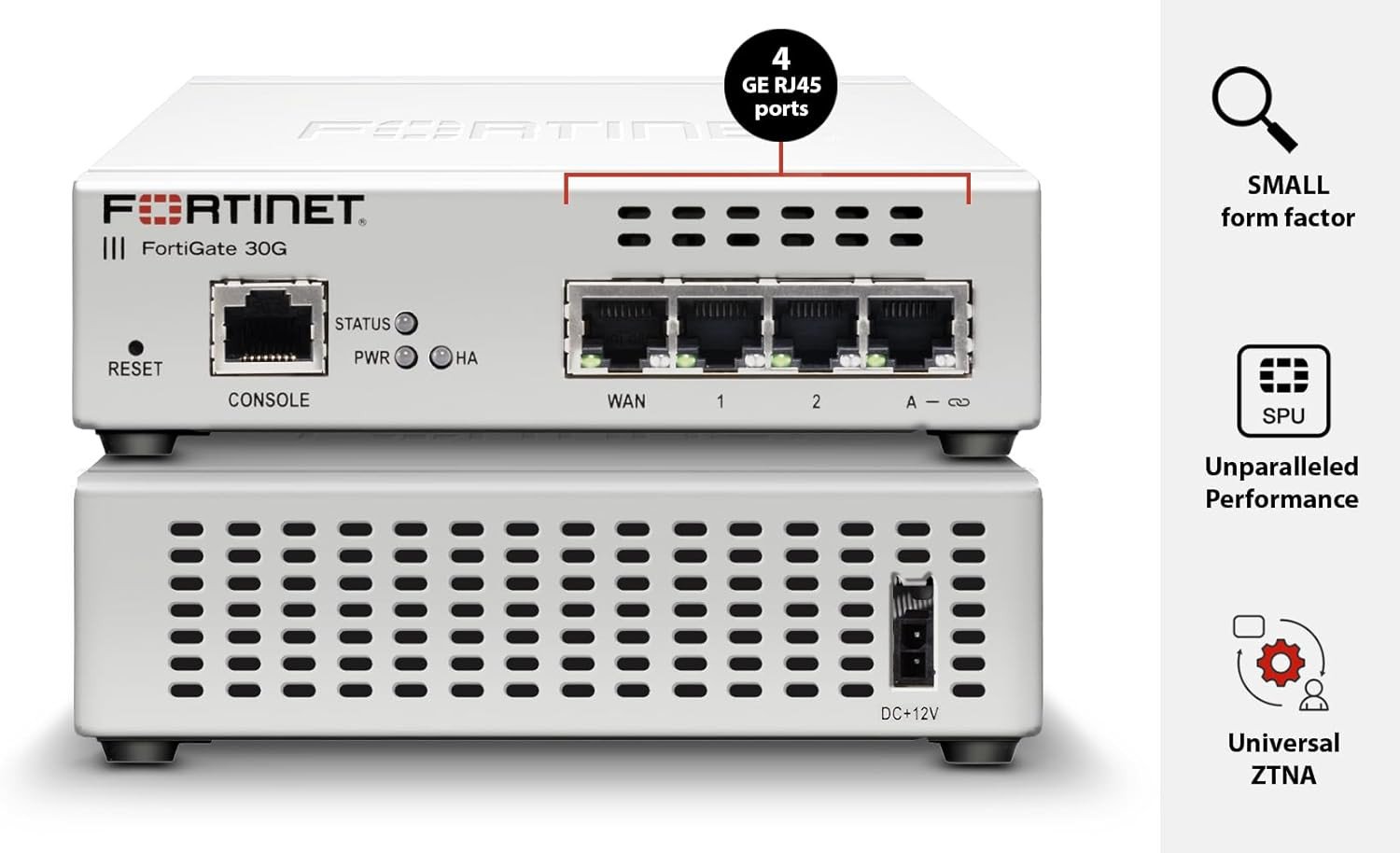 The FortiGate 30G is a compact, fanless Next-Generation Firewall (NGFW) and SD-WAN appliance purpose-built for small offices, branch sites, and distributed environments with modest user and device counts. It runs Fortinet’s powerful FortiOS operating system, unifying networking and security functions into a single platform. With solid performance, integrated threat protection, and flexible connectivity in a small form factor, it provides enterprise-class capabilities without complexity — ideal for environments with around 1–5 users/devices.