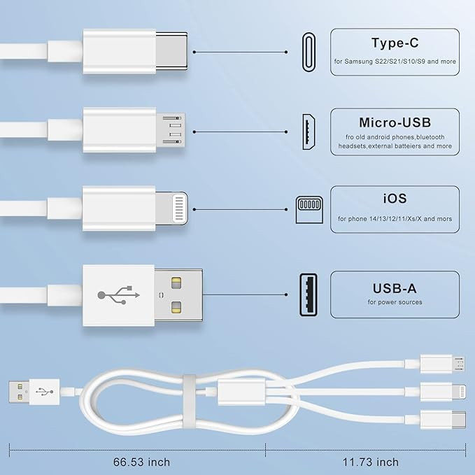 3-in-1 Design: Combines Lightning, Micro USB, and USB Type-C connectors in a single cable