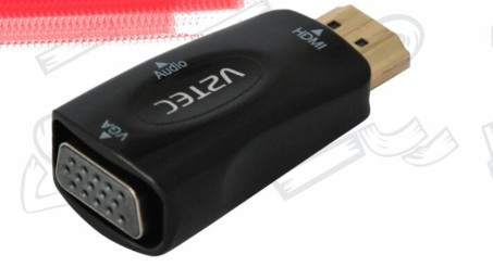 Built‑in converter chipset (e.g., Chrontel CH7101 or equivalent) translates HDMI digital video to VGA analog signal.