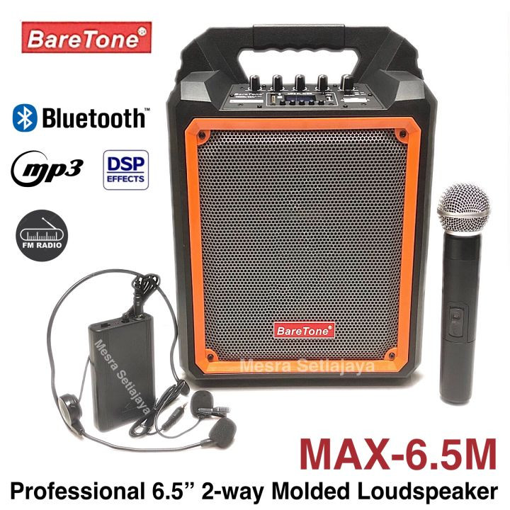 The BareTone Max-6.5M delivers powerful, versatile sound in a compact, portable design—perfect for both indoor and outdoor use. This 6.5" active speaker features a built-in rechargeable battery, making it ideal for on-the-go events and mobile setups.