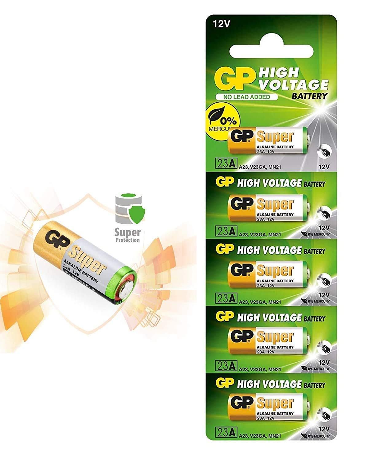 GP high voltage battery 23A is your go-to for powering entry devices including garage door openers, wireless doorbells and locks, as well as remotes, dog collars, and medical devices. It is built to deliver long-lasting maximum power output that is stable throughout use, keeping up with today’s energy-demanding technology. Engineered to offer complete protection against leakage with its secure technology, it ensures high safety for you and your device. These batteries are developed to withstand the test of time and are guaranteed with a 3-year shelf life. Our alkaline button cell is mercury-free, reducing its impact on the environment.