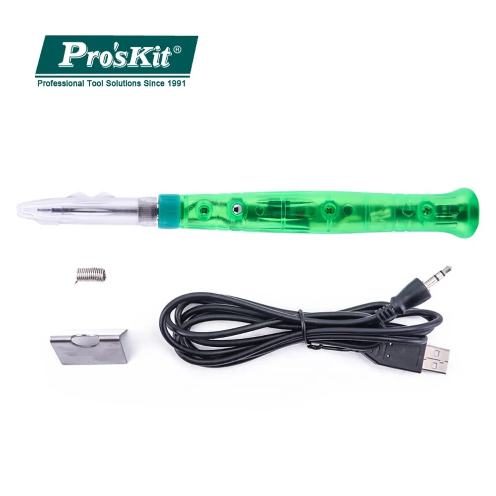 The Pro'sKit SI-168U USB Soldering Iron is a compact and efficient soldering tool powered directly via USB, making it ideal for quick electronic repairs, fieldwork, and DIY projects. Designed with convenience and portability in mind, it heats up rapidly and provides stable performance for precision soldering tasks.