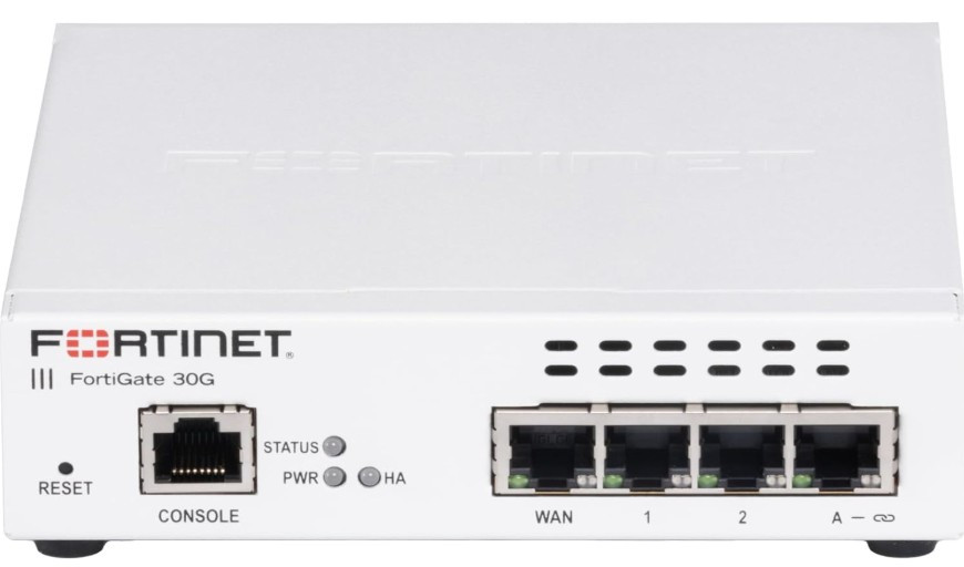 The FortiGate 30G is a compact, fanless Next-Generation Firewall (NGFW) and SD-WAN appliance purpose-built for small offices, branch sites, and distributed environments with modest user and device counts. It runs Fortinet’s powerful FortiOS operating system, unifying networking and security functions into a single platform. With solid performance, integrated threat protection, and flexible connectivity in a small form factor, it provides enterprise-class capabilities without complexity — ideal for environments with around 1–5 users/devices.