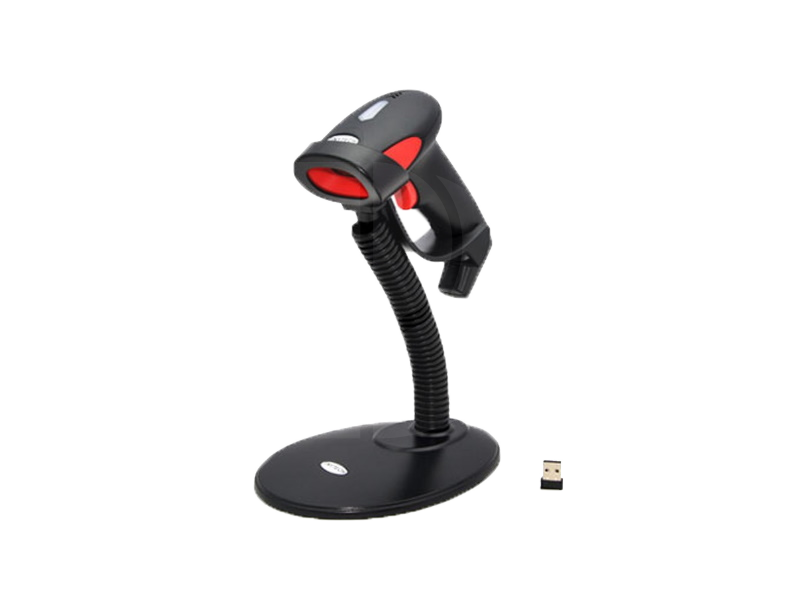 The scanner can connect to devices via a USB cable or wirelessly using a mini USB receiver.